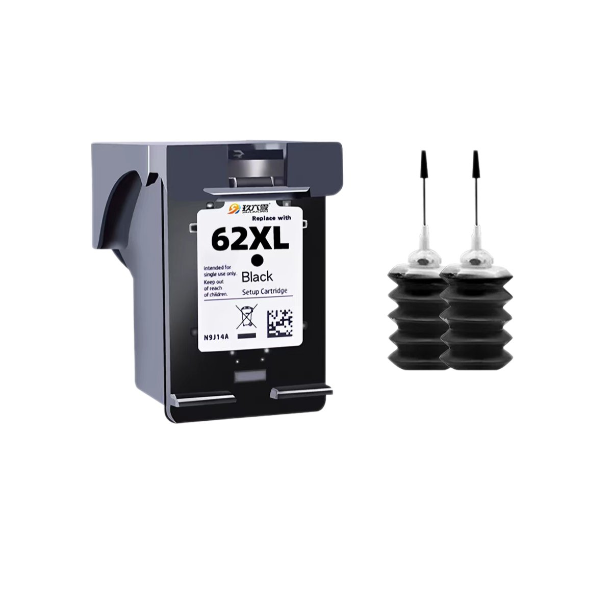 HP62XL Black + 2 bottles of black ink=32
